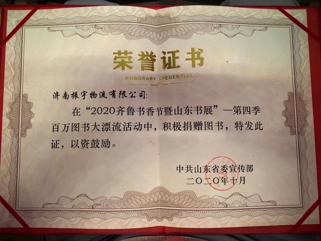 振宇物流此次積極主動(dòng)參與“2020年齊魯書香節(jié)暨山東書展-第四季百萬圖書大漂流”活動(dòng),只為讓每一位鄉(xiāng)村孩子都能讀上一本完好的書,努力承擔(dān)書籍裝卸及運(yùn)輸,將這些書籍送往東明縣沙窩鎮(zhèn)姜屯小學(xué)。