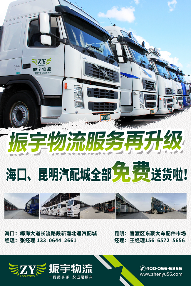 振宇物流服務(wù)再升級!海口、昆明汽配城全部免費送貨啦!