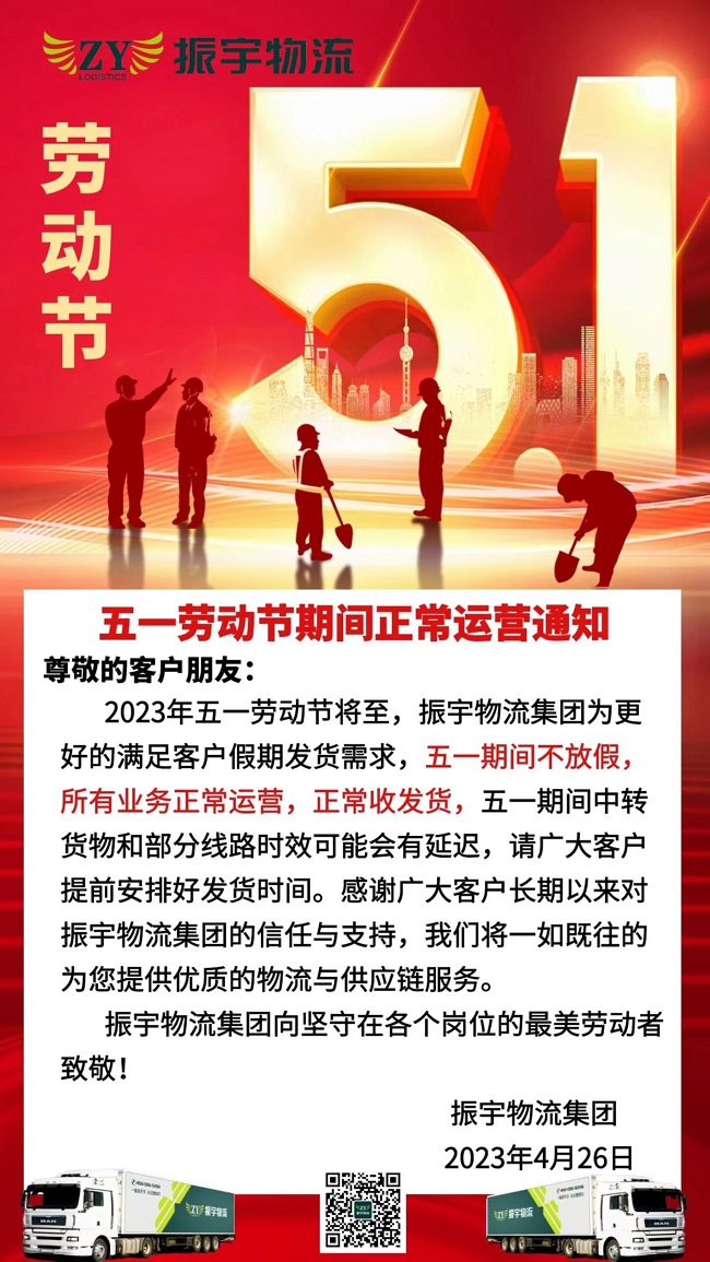 振宇物流集團丨五一期間正常運營通知