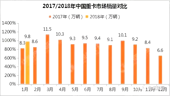 據(jù)統(tǒng)計(jì)數(shù)據(jù)顯示,自2016年10月開(kāi)始延續(xù)至2017年10月,國(guó)內(nèi)重卡市場(chǎng)連續(xù)13個(gè)月爆發(fā)式增長(zhǎng)!2017年全年,國(guó)內(nèi)重型貨車產(chǎn)量為114.97萬(wàn)輛,同比增長(zhǎng)55.07%,銷量為111.69萬(wàn)輛,同比增長(zhǎng)52.38%。而18年1月重卡市場(chǎng)的“開(kāi)門(mén)紅”除了同環(huán)比雙雙增長(zhǎng)以外,同時(shí)也打破了去年1月銷量8.3萬(wàn)輛的紀(jì)錄。