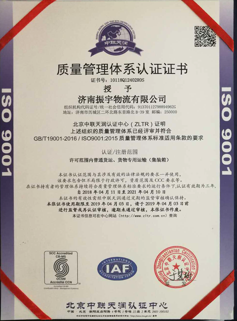 ISO 9001質(zhì)量管理體系認(rèn)證證書